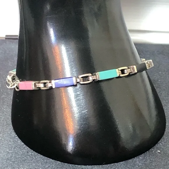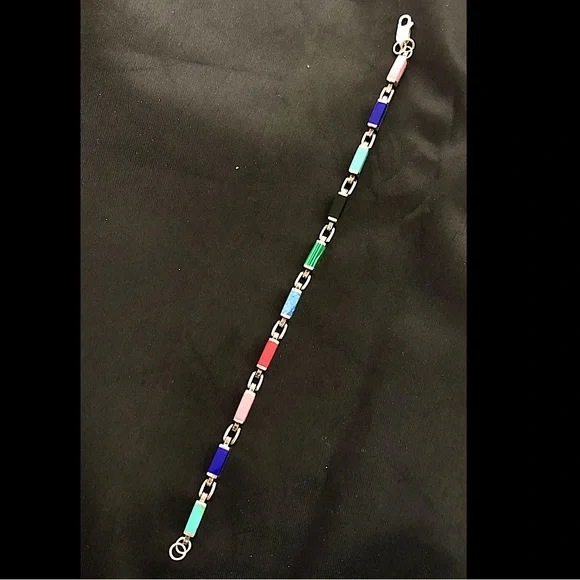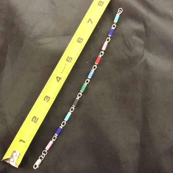 TAXCO Sterling Silver Multi-Gemstone Link BraceletTAXCO Sterling Silver Link BraceletSterling Silver Coral, Lapis Lazuli, Onyx, Turquoise, Jasper and Malachite BraceletCabochon Square Cut Gem StonesMeasures Approximately 8” Long x 1/8” WideLobster Claw ClaspAcid Tested Sterling SilverMarked: TAXCO, 950Simply Gorgeous BraceletAsk Questions and/or Request Additional Photos, Measurements as NeededColor May Vary Based On Shadows, Lighting, Monitor, Display Settings $325