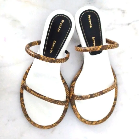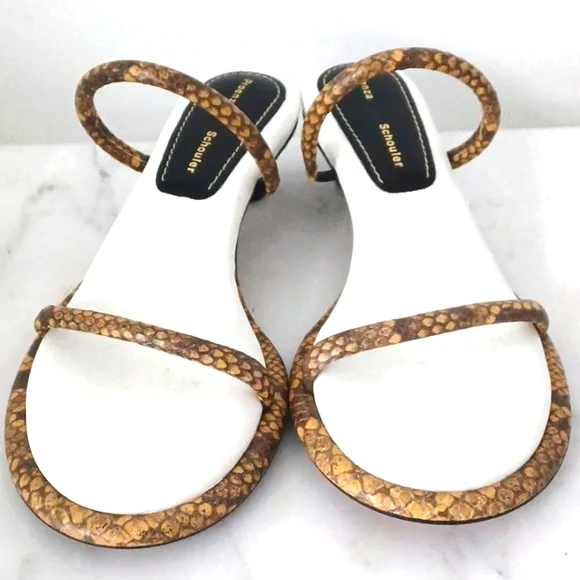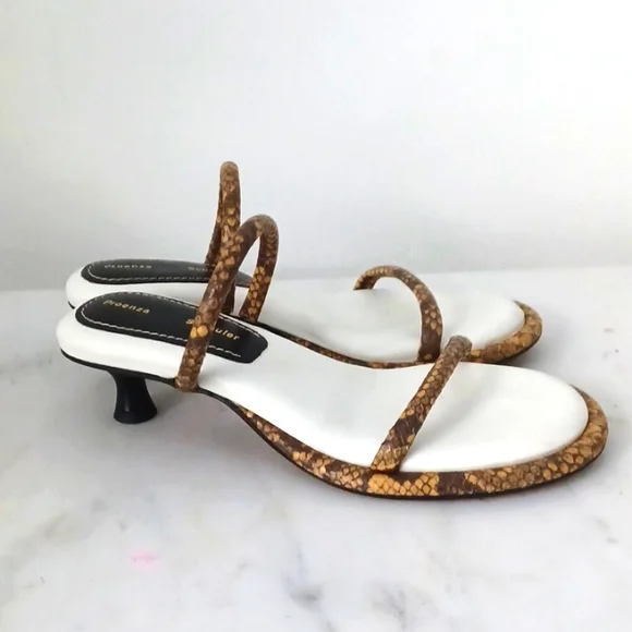 Brand new sandals, snakeskin straps, white leather insole. Kitten Heel.Without Box.
