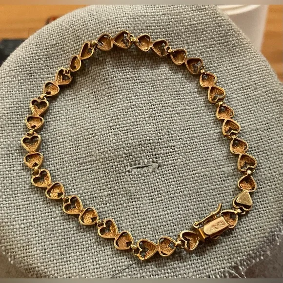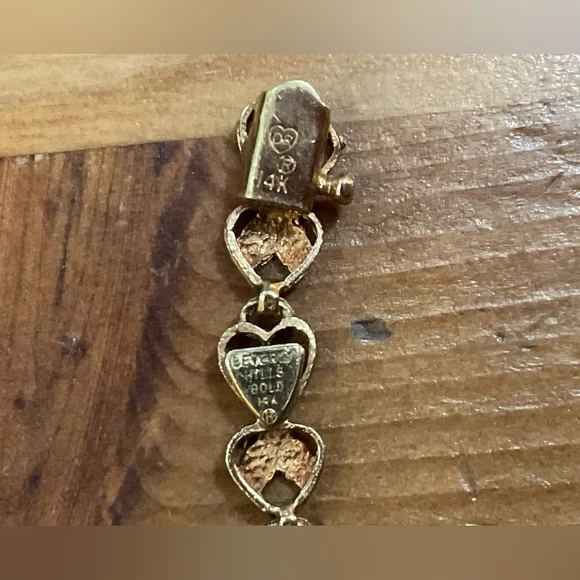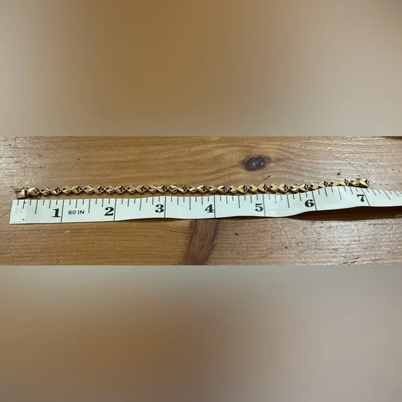 Beverly Hills Gold: about/approximately 7” inches diamond cut vintage/rare find signed/stamped 14k & B.H.G.Push/slide level back secured clasp/closure.bracelet. 5.05 grams ( no guarantee on gram weight). In excellent preowned condition sold as is no returns, no refunds, all sales are final no exceptions.
