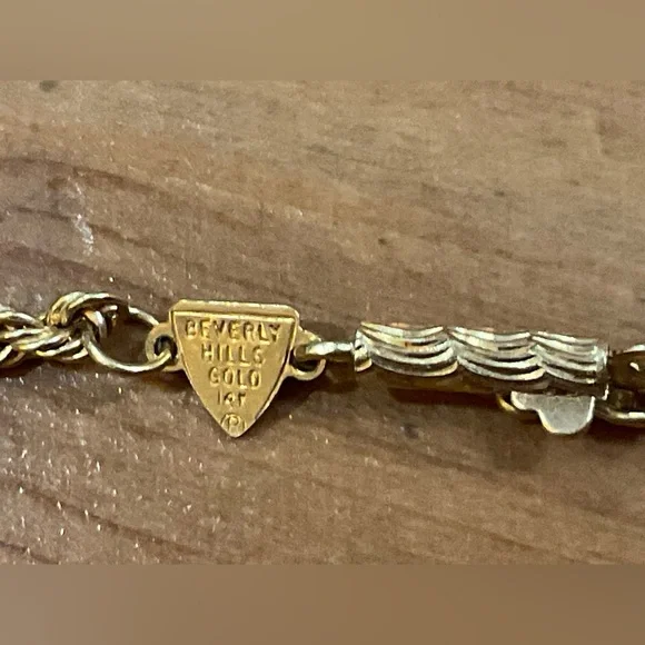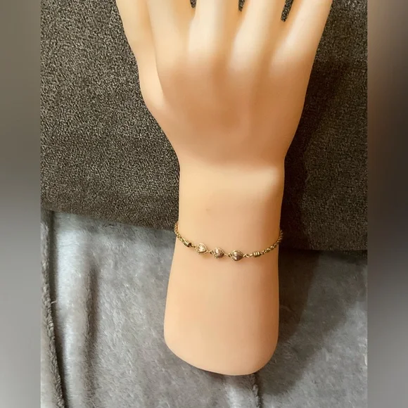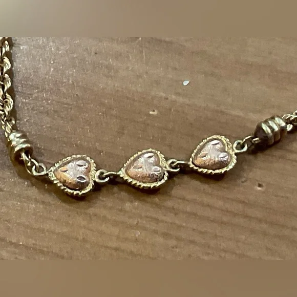 Beverly Hills Gold: vintage 14k. Triple puffy heart rose gold n yellow gold twisted rope bracelet about / approximately 7 1/2” inches. In excellent preowned condition.Not been worn Rare findsold as is no returns no refunds all sales are final no exceptions. Very dainty, demur, lightweight don’t know grams .
