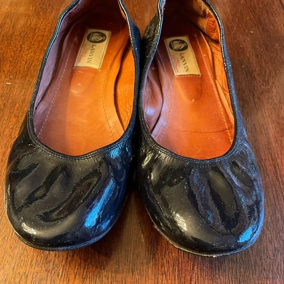 Lanvin Navy Blue Patent Leather Ballet Flats Signature flatsSo comfortable Size 38