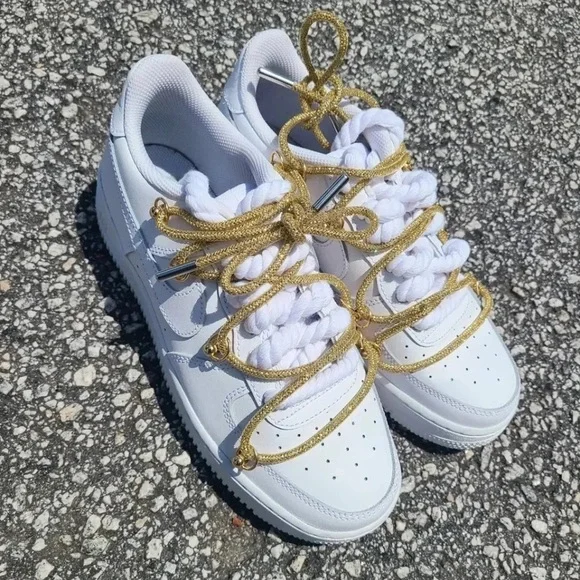 Brand new in original box Custom made to order Bling gold laces (also available in silver)Double lacesYouth sizes converted to womens Select size in womens shoes