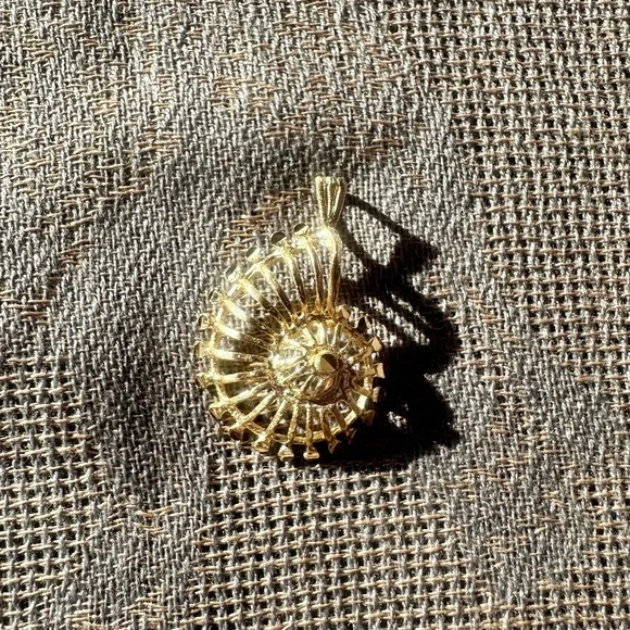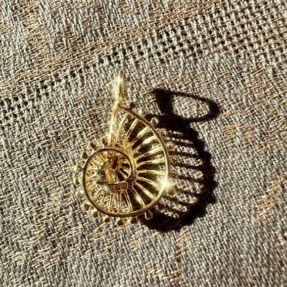 1.90g 14k gold original glittering pendant. 27mm long, 18mm wide with 4mm D-shaped connector loop at top