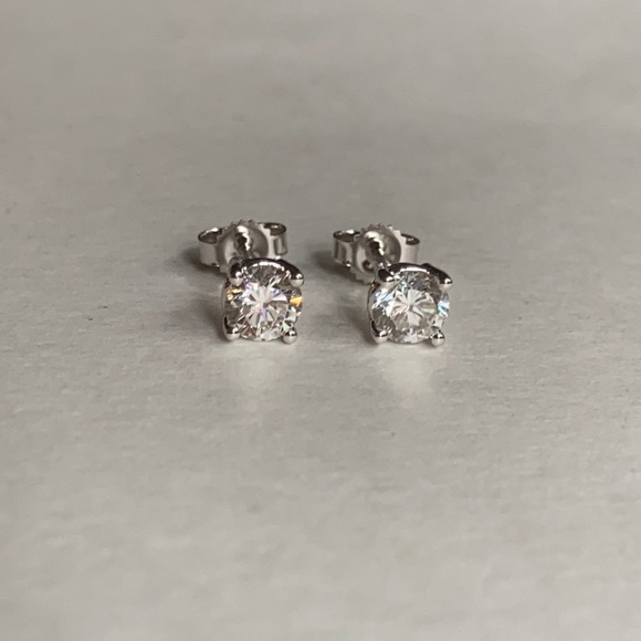 Moissanite Fire SOLID 10K white gold earrings Approximately 1.00 carat diamond equivalent total weight for the pairDouble notched posts with clutch backsBeautiful white sparkling stonesCharles Winston design Good used condition, rarely worn Certificate of authenticity Only reasonable offers considered LOWBALLS WILL BE DECLINED FINAL SALE, NO RETURNS