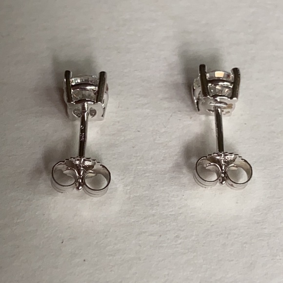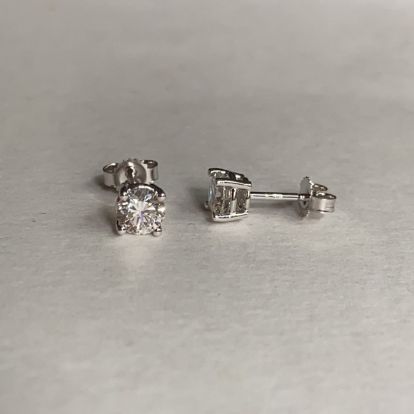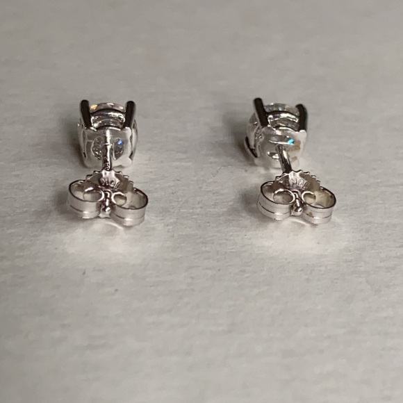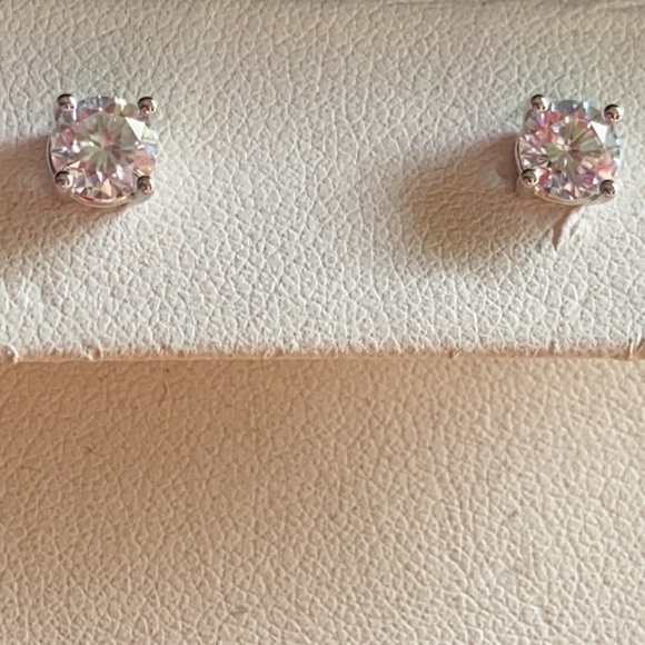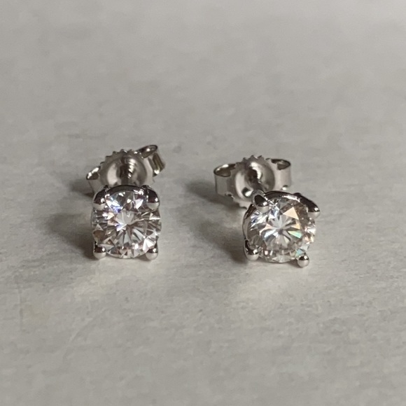 Moissanite Fire SOLID 10K white gold earrings Approximately 1.00 carat diamond equivalent total weight for the pairDouble notched posts with clutch backsBeautiful white sparkling...
