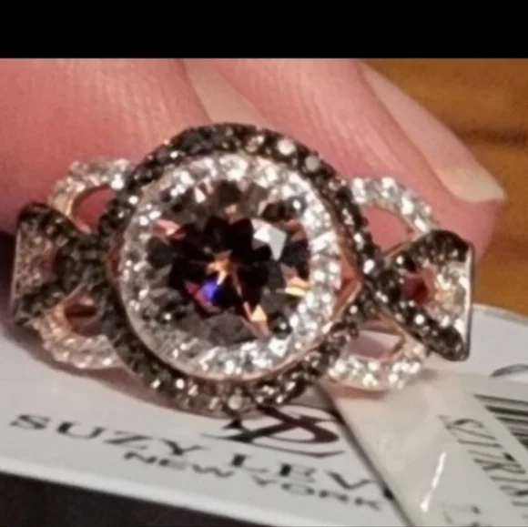 ✨️ ALL SIZES AVAILABLE NOW✨️Product Details✨️ Elegant simulated diamonds. ✨️Stunning gemstones.✨️Cubic zirconia✨️Ring can not be re-sizedEye-candy so delicious you´ll never want to take it off. This tasteful style is rich in color, fashion, and design. A tasteful brown round-cut cubic zirconia is centered in a double halo of brown and white cubic zirconia amidst a gladiator crossover of sparkling gemstones Bringing together a center stone classic style partnered with a modern crossover design to create a magestic drapery of gemstones with a unique twist. This ring is designed by Suzy Levian with a message. By creating jewelry that is beautiful inside and out, Suzy Levian´s message is revealed through a hidden secret signature gemstone set in the shank of this ring to empower women to discover their inner strength, power and beauty. ´Together, we can inspire the world to appreciate the diamond in ourselves.´ - Suzy Levian