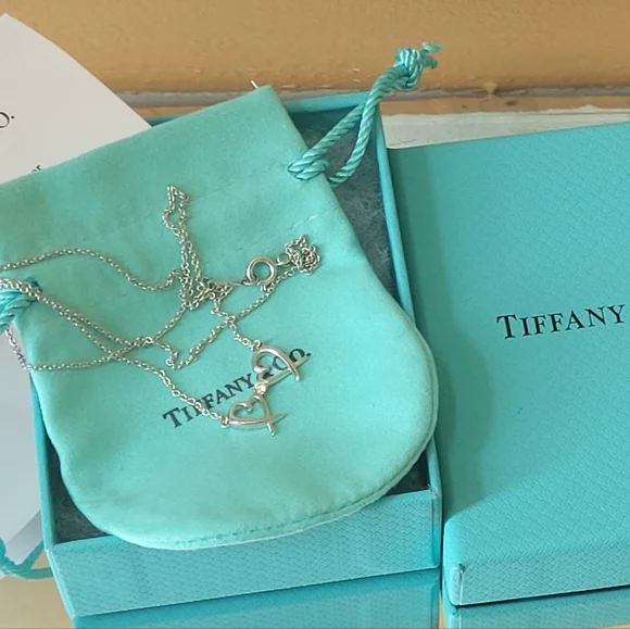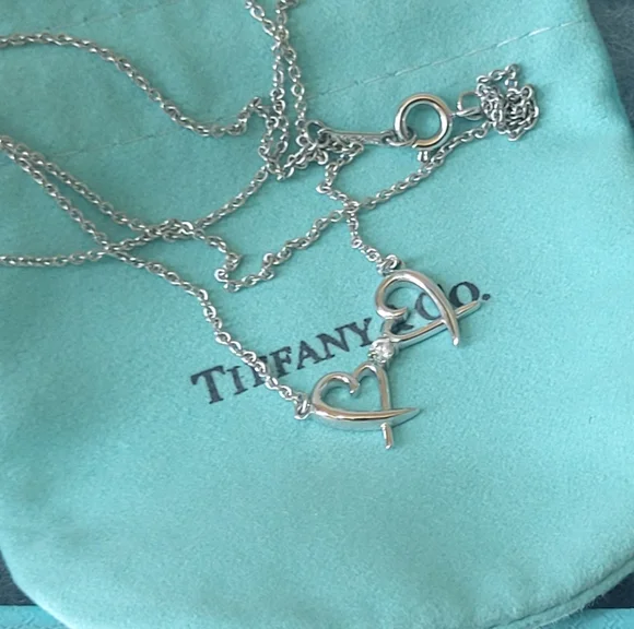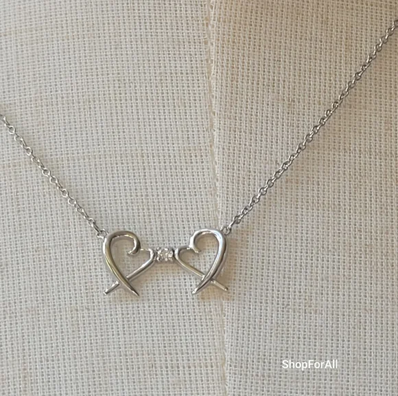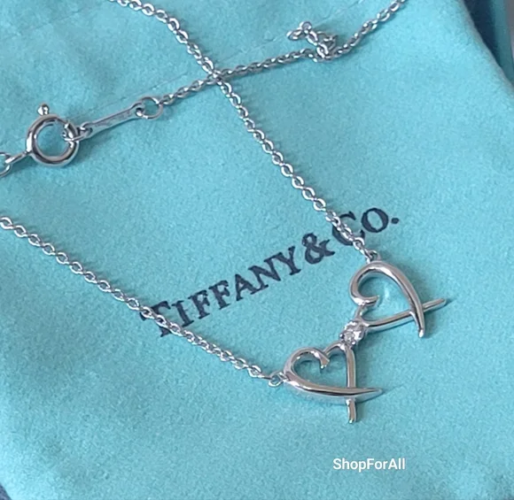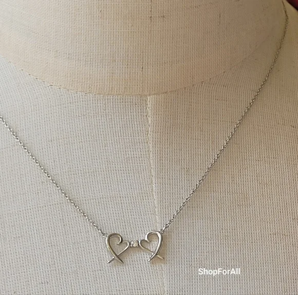 Tiffany And Co Paloma Picso double loving heart necklace16 inch chaincome with pouch and box