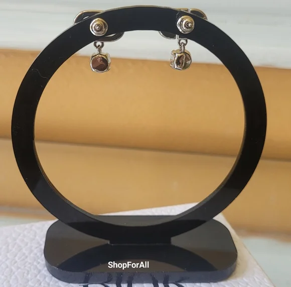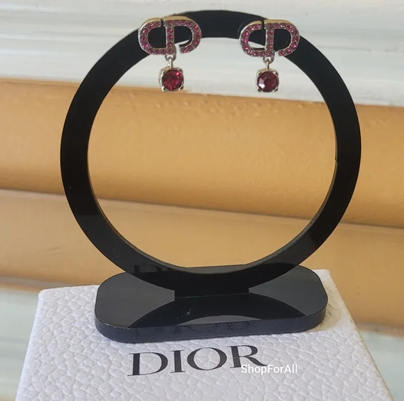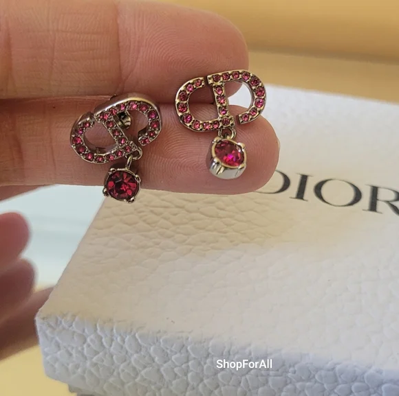 The Petit CD stud earrings have a refined, elegant appeal. The CD signature in sliver-finish metal with a pave of pink crystals features a delicately suspended pink crystal. Modern and sophisticated, the stud earrings can be worn with other Petit CD creations.- Pink crystals- CD signature- sliver finish metal- Push claspno box ,no dust bag