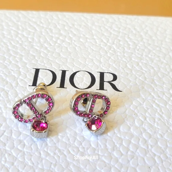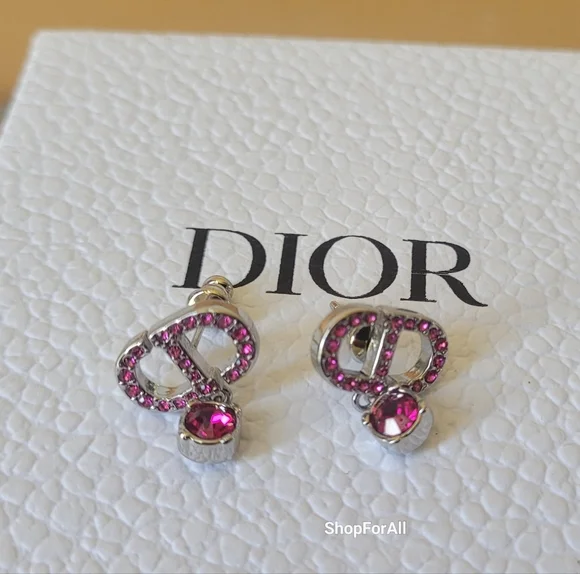 Dior Pink and Silver Crystal Earrings (WOB)