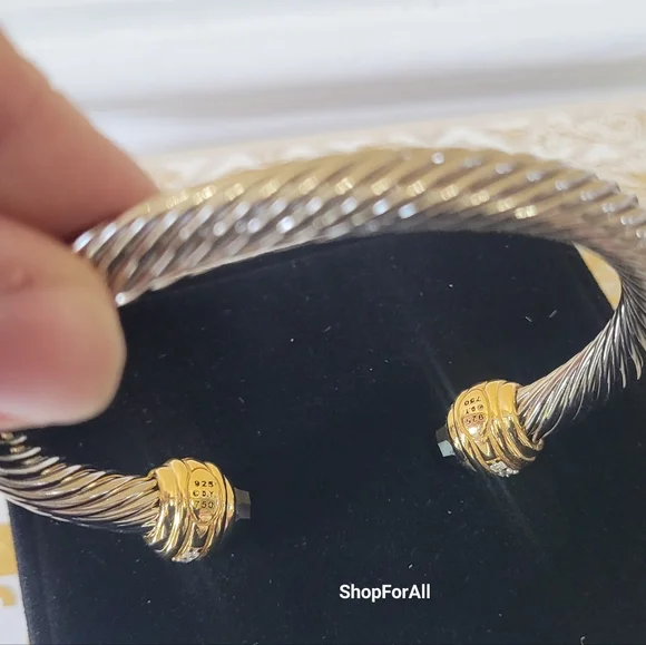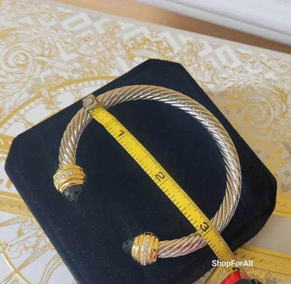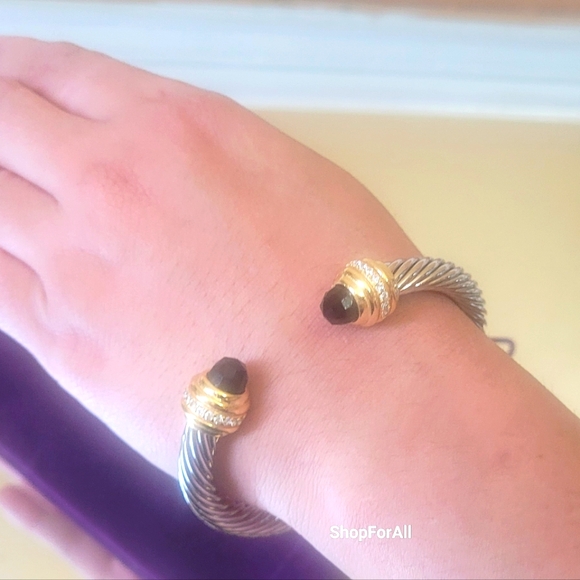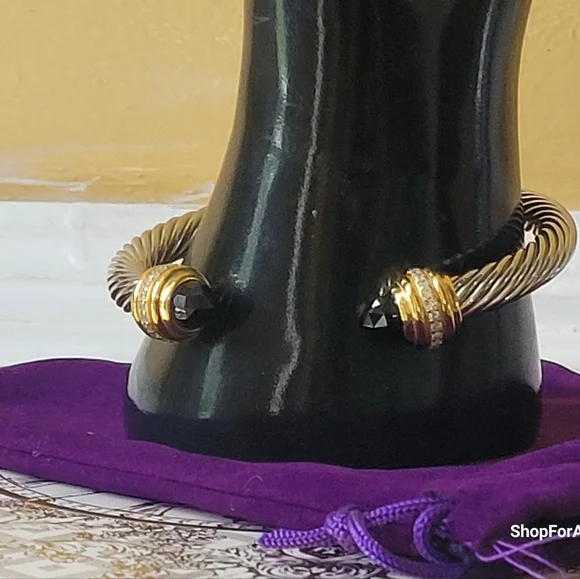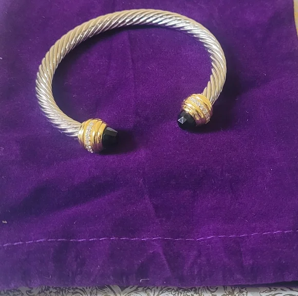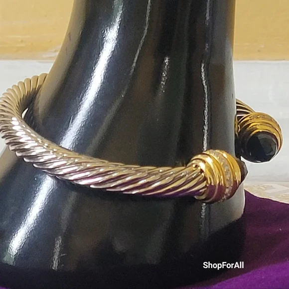 David Yurman Sterlig Sliver With18 K Yellow and Black Onyx 7 MM Cable Braceletno Box, no dust