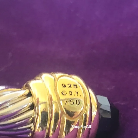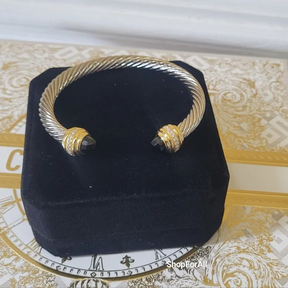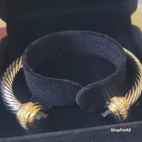 David Yurman Sterlig Sliver With18 K Yellow and Black Onyx 7 MM Cable Bracelet