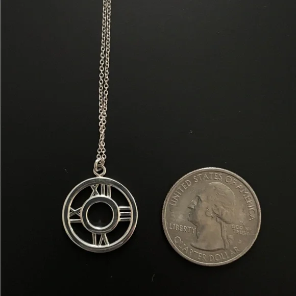 AuthenticTiffany & Co. Sterling Silver Atlas Medallion Pendant Necklace w Pouch only