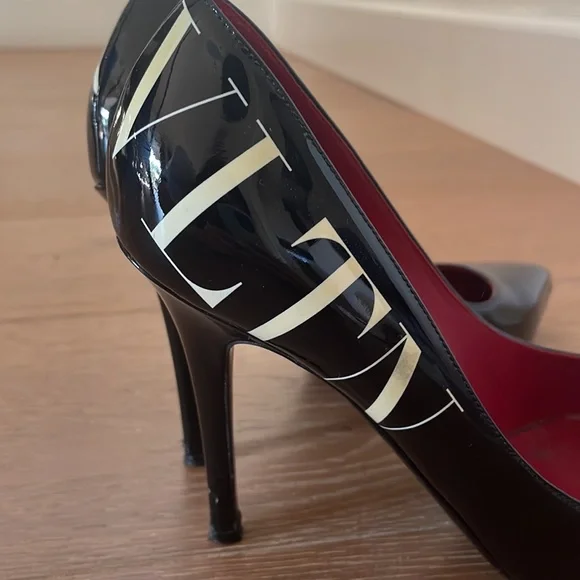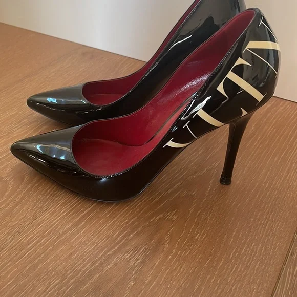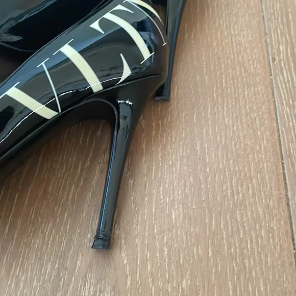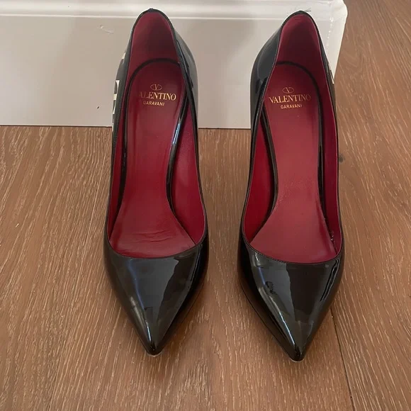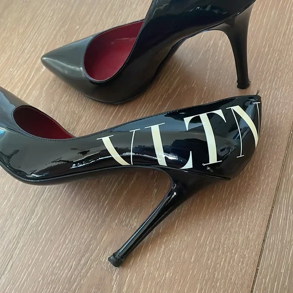 Beautiful authentic Valentino pumps, size 37.5. Worn 3 times. Slight damage on the heel (pictured). Valentino logo on the side isn’t as white as it used to be. Other than that, great condition. Very clean. Pointy toe. Made in Italy.