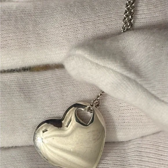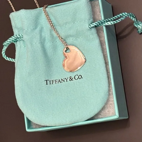 Elegant heart pendant necklace. Iconic Authentic Silver Tiffany & Co. design. Perfect for any occasion. Dust bag and box are included.chain length is 16 inches long