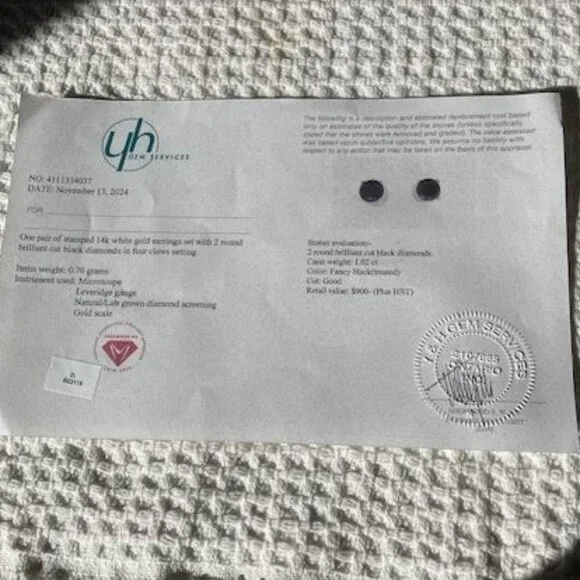 14k white gold brilliant cut black diamond earrings. comes with appraisal form 2024