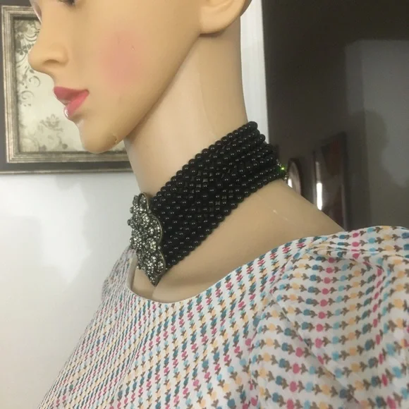 Black Diamond Flower Center Onyx Beads Choker