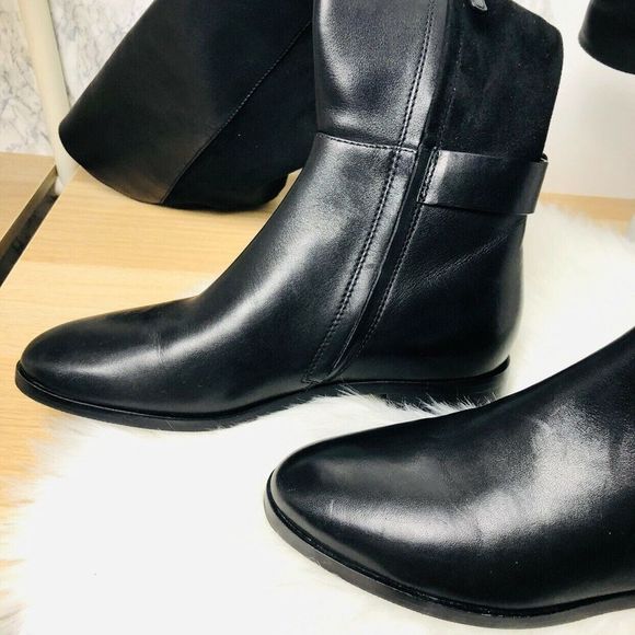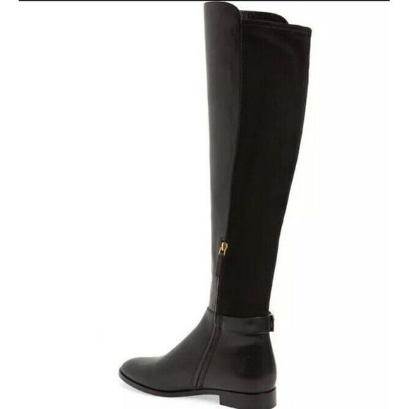 DetailsDouble-ring T logo hardware stylishly brands an over-the-knee boot backed with stretchy paneling to ensure a comfortable fit. - Almond toe - Inset side zip closure - Leather construction - Approx. 21" shaft height; 14" - 15" opening circumference - Approx. 1" heel - Importednew without box, just slight scuffing from being tried on in store, can be removed with leather cleaner.MaterialsLeather and textile upper, leather lining, rubber and leather sole