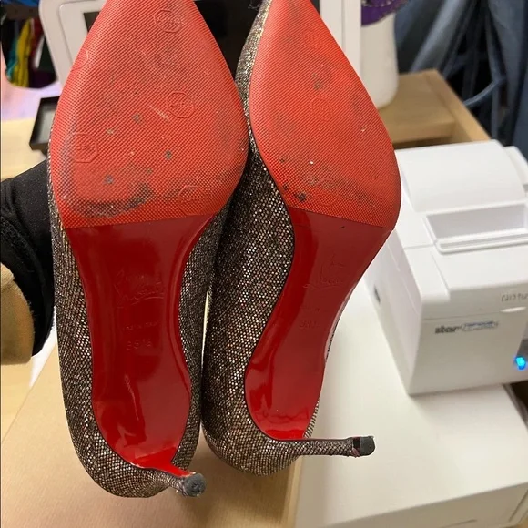 Christian Louboutin Authentic guaranteed Christian Louboutin has wear. Preloved. Comes with box .Has wear all around please see photos. 100% authentic guaranteed