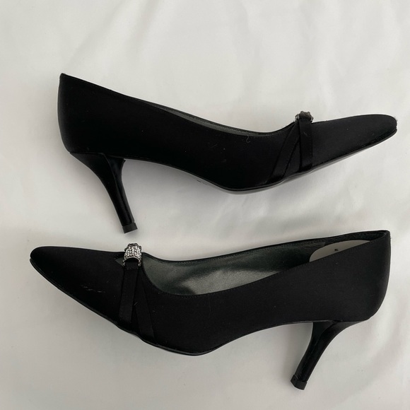 Comes with box Suede back pump with lower heel, diamond detail on pointed toeSize 7Heel pad was added for comfort, only worn once though! accepting offers