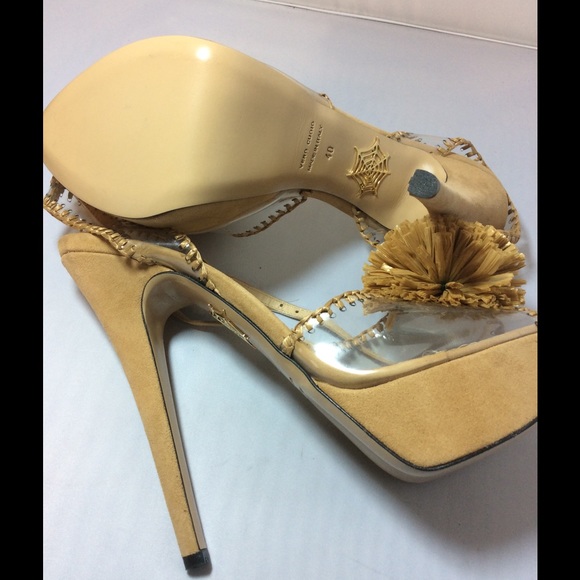 Charlotte Olympia Pomeline Heel - In perfect NWT condition and as always, guaranteed authentic!*Cute straw ball on toe*Ankle strap*Buckle fastening*6 inch heel*1 1/2 inch...