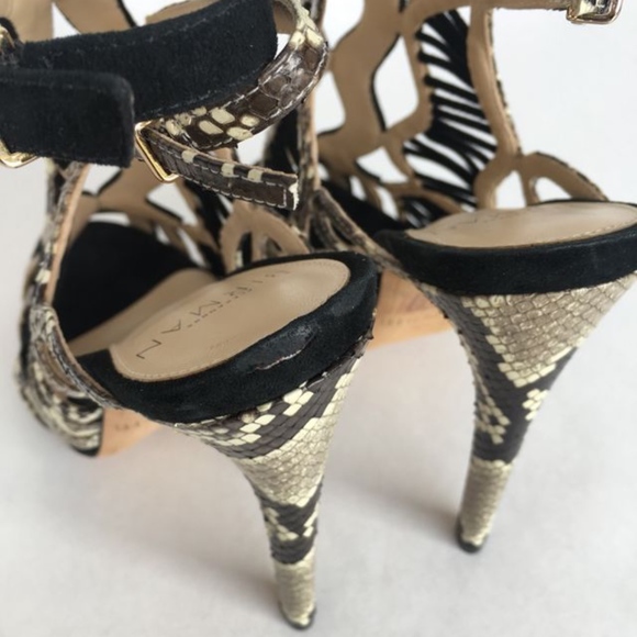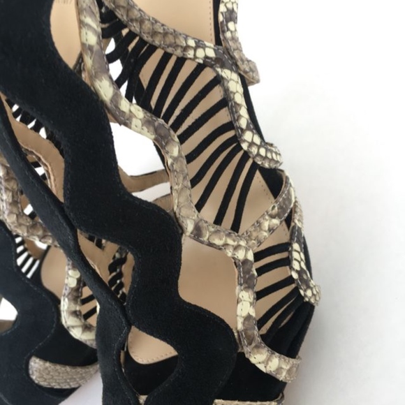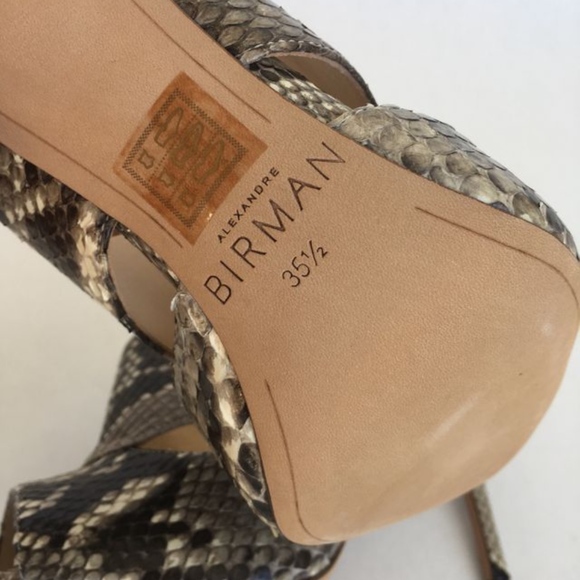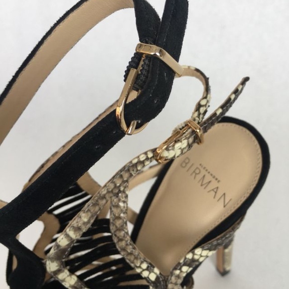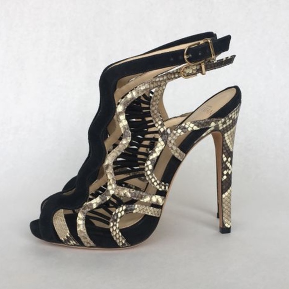 Alexandre Birman Heels - In excellent condition and as always, guaranteed authentic! Comes new in box with dustbag.*Black suede*Python detailing*Gorgeous suede detailing between the python straps*Peep toe*Tweo buckle closures on outer side of shoe*Stunning*5 inch heel*MSRP $850