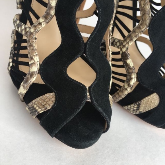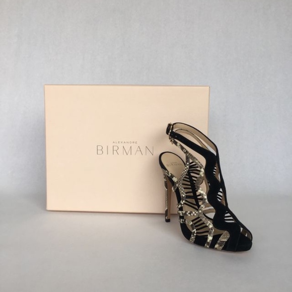 Alexandre Birman Heels - In excellent condition and as always, guaranteed authentic! Comes new in box with dustbag.*Black suede*Python detailing*Gorgeous suede detailing between...