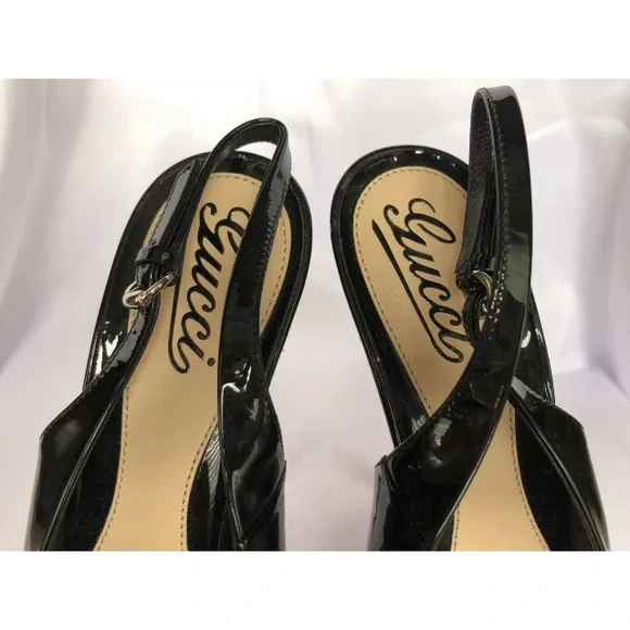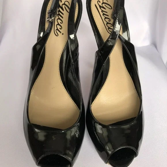 100% Authentic Preowned Black Patent Peep Toe Platform Pump Heel 39 1/2 EU