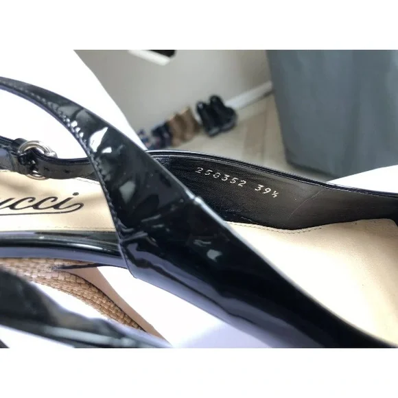Retail $695Black Patent Leather UpperLeather soleWoven straw heel and peep toe detailPlatformMade in ItalyShipped with original duster bag and a set of replacement heel tips.No box included.Gently used; only worn a few times.Pet free and smoke free home