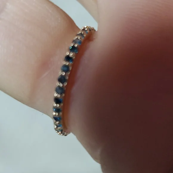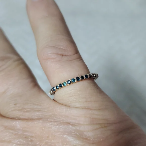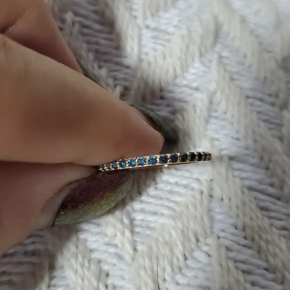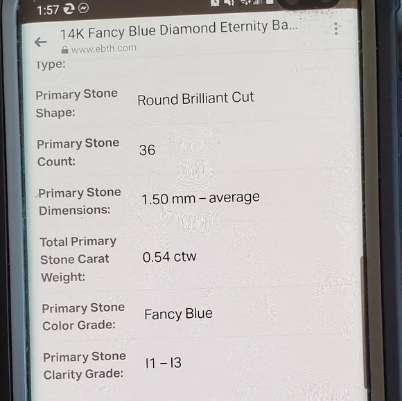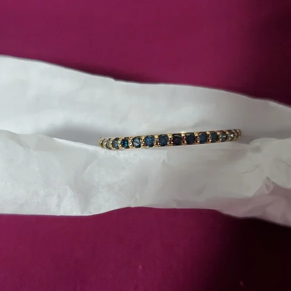 14k yellow goldring size: 7total weight:.90primary stone type: diamond primary stone shape: round brilliant cutprimary stone count:36primary stone dimensions: 1.50mm-averagetotal primary stone carat weight: .54 ctwprimary stone color grade: fancy blueprimary stone clarity grade: l1-l3see pictures