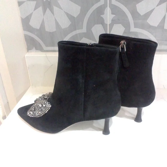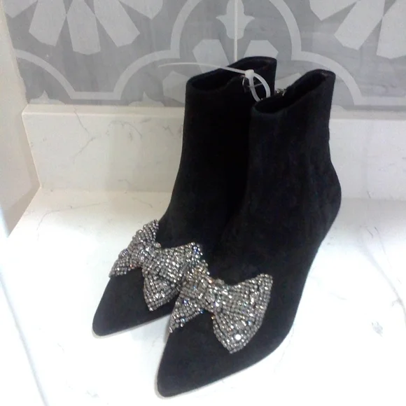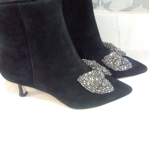 New without tags or boxTory Burch Embellished Suede & Leather Boots W Rhinestone Bow WM US 5.5All leather and suedeSparking Rhinestone bow in lightsKitten heelNo returns