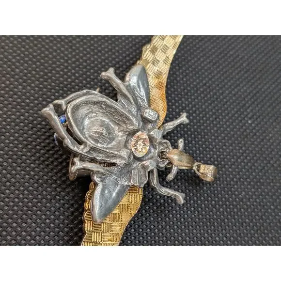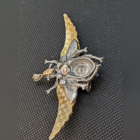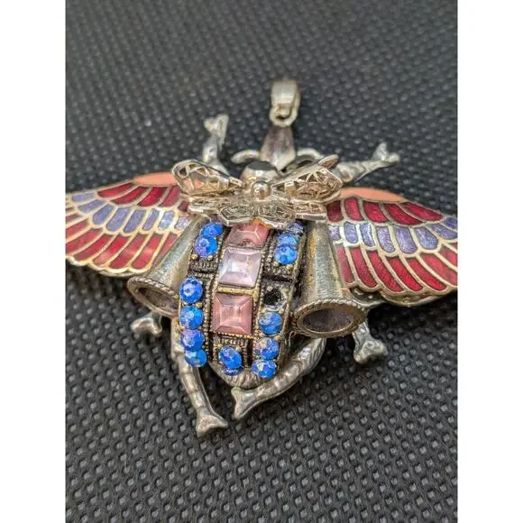 Nata Zhur Egyptian Revival Enamel Old Vintage Winged Scarab Pendant 18KGP! So cool!!! One stone is missing.