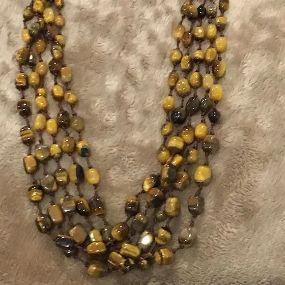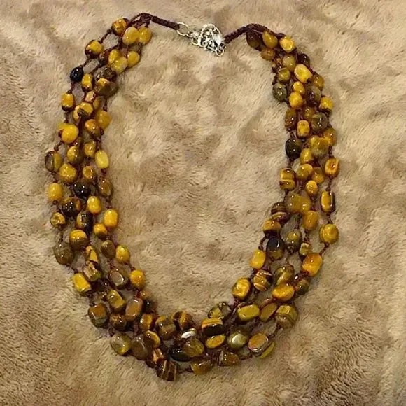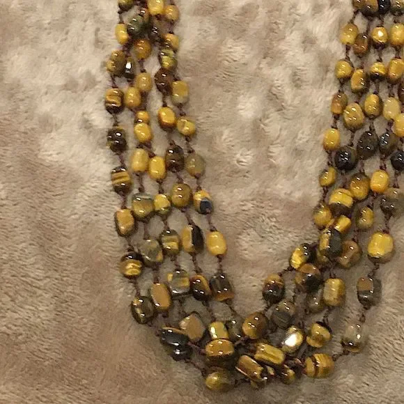 VINTAGE Four Stand Tigers Eye Sterling Silver Necklace Vintage NecklaceSterling Silver, 925Quadruple Strand, 4-StrandLobster Clasp With ExtenderMeasures: ~18-3/4”- 21”Hand KnottedAbsolutely Stunning ConditionAsk Questions and/or Request Additional Photos, Measurements as NeededColor May Vary Based On Shadows, Lighting, Monitor, Display Settings$325