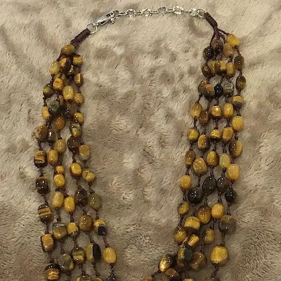 VINTAGE Four Stand Tigers Eye Sterling Silver Necklace Vintage NecklaceSterling Silver, 925Quadruple Strand, 4-StrandLobster Clasp With ExtenderMeasures: ~18-3/4”- 21”Hand...