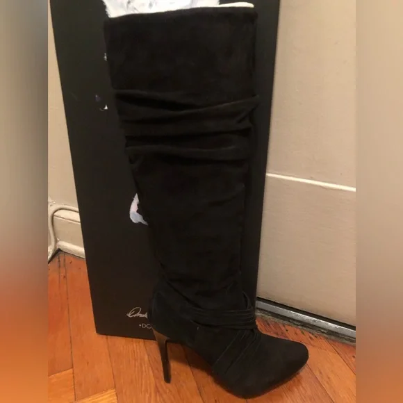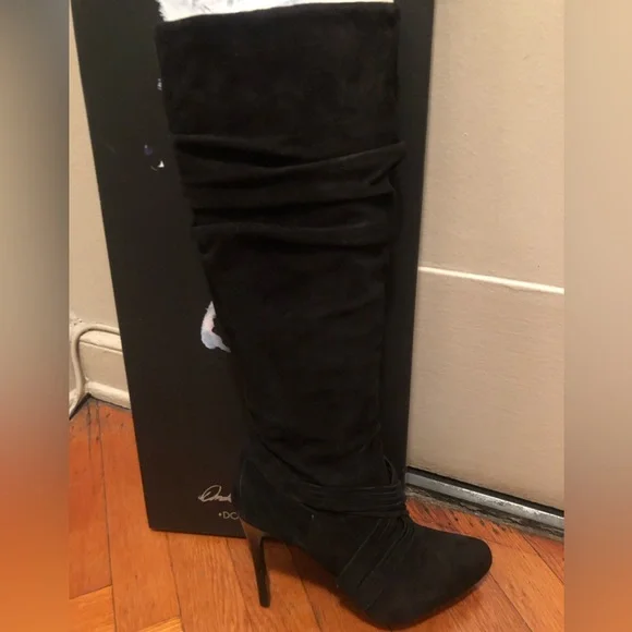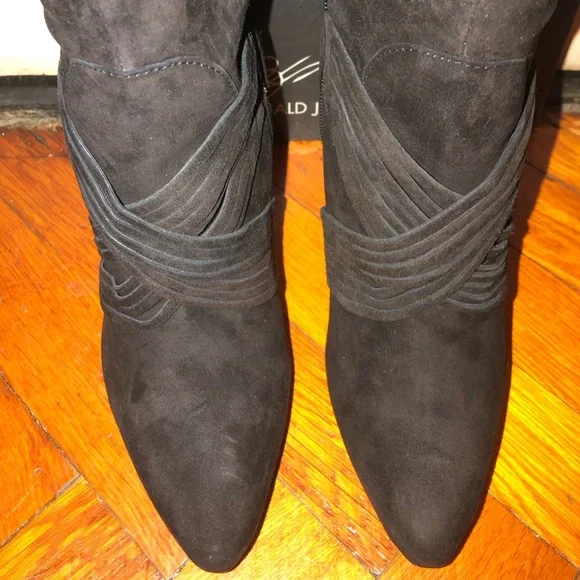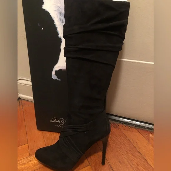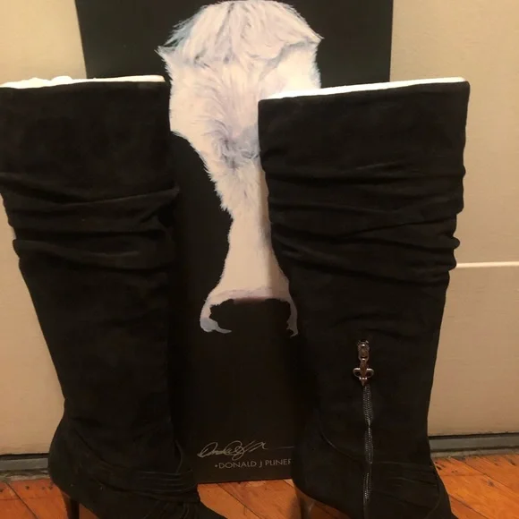 NWT in box Sexy Donald J Pliner black suede over the knee boots. Inside zipper with silver tone hardware. Pleated upper detail. Rounded toe with pleated cross over detail at...