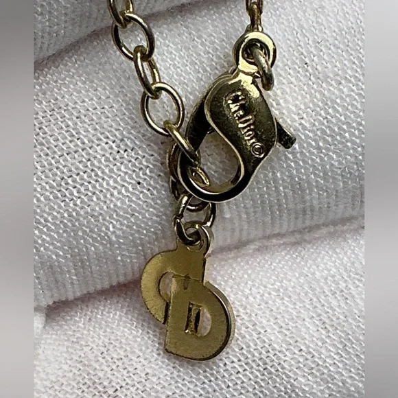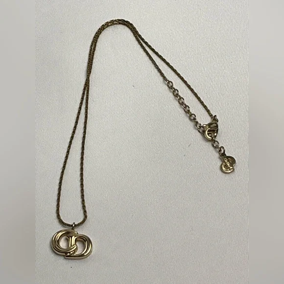 Indulge in luxury with this Vintage Christian Dior Logo Necklace. Crafted with intricate detail and adorned with the renowned Dior logo, this necklace exudes sophistication and elegance. Elevate your style and make a statement with this timeless piece. Perfect for any occasion, this necklace is a must-have for the fashion-forward individual.Approx length 18".Comes with non branded black pouch.
