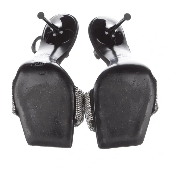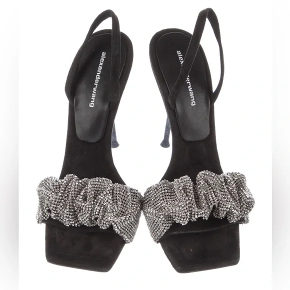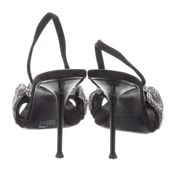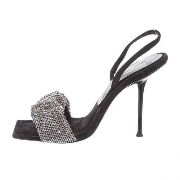 Alexander Wang Suede Slingback Sandals•Black•Printed•Crystal Embellishments & Leather Trim•Stiletto Heels•Elasticized Straps•Includes Box pictures of actual shoe