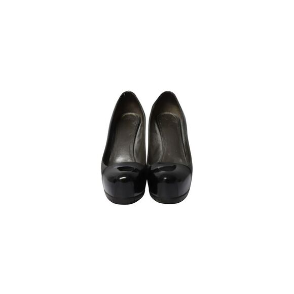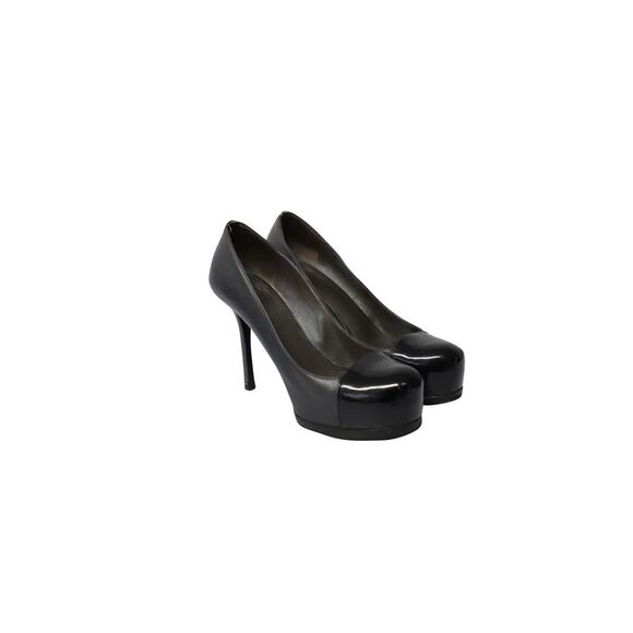 This Saint Laurent heels is chic and stylish.It is made with leather and a patent leather cap-toe for an added elegance.It features a round toe, platform sole and stiletto...