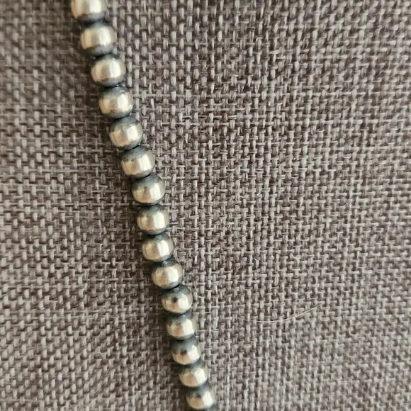 Stunning Native American Navajo Pearls and squash blossom pendant are in new never worn condition. Pearls are marked sterling and measure 4mm and 18" long. Pendant measures...
