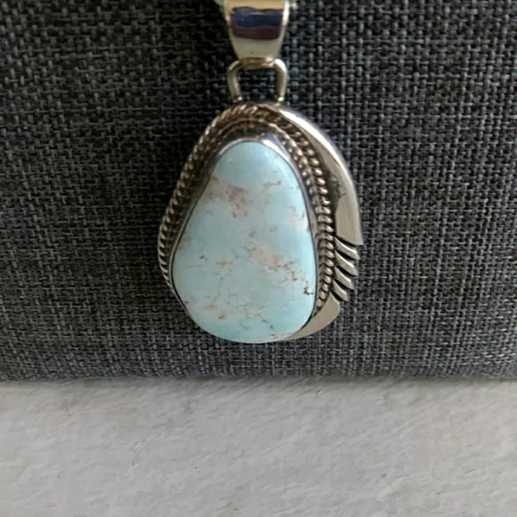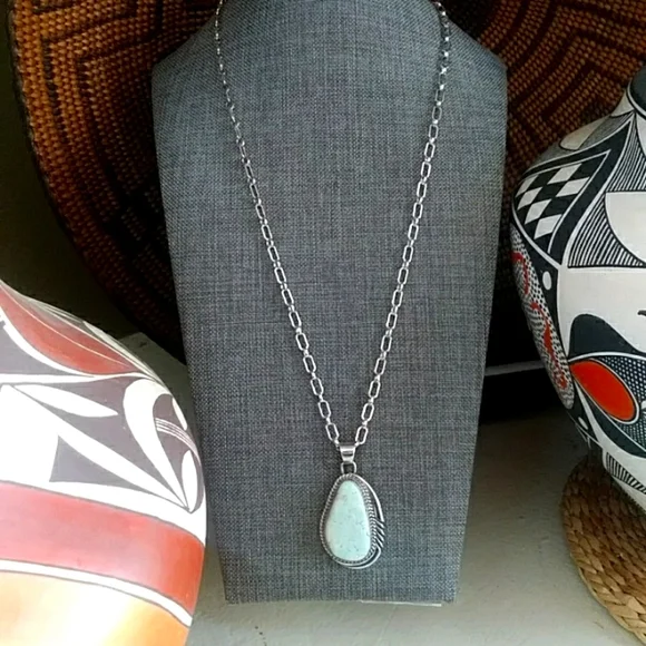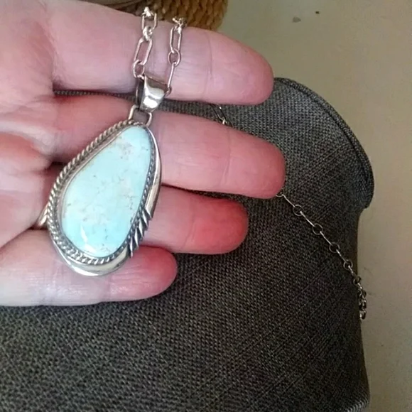 Beautiful Navajo Dry Creek turquoise pendant and sterling large link chain. Gorgeous light pale collectible Dry Creek Mine turquoise stone with brown inclusions. Very pretty...