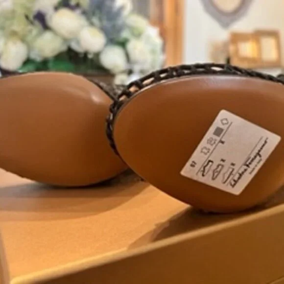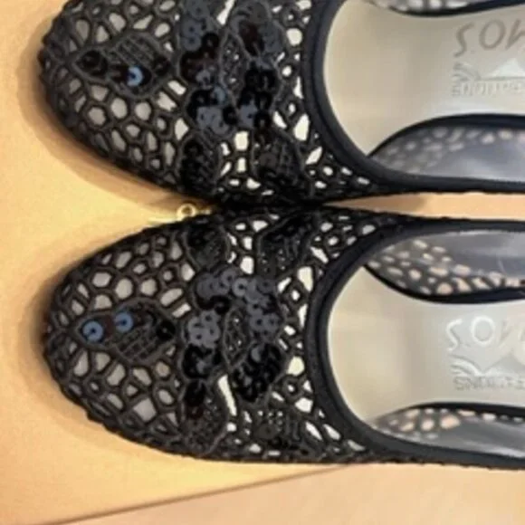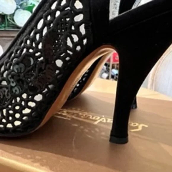 These are show stoppers.A limited edition line of shoes from Salvatore Ferragamo called CREATIONS.A numbered set of new shoes never worn in a size 7.They are lace silk and sequins.Slingbacks.GORGEOUS.