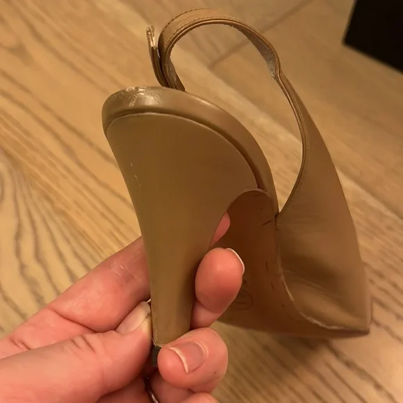 Vtg Capretto beige leather and red lizard toe sling back heels shoes