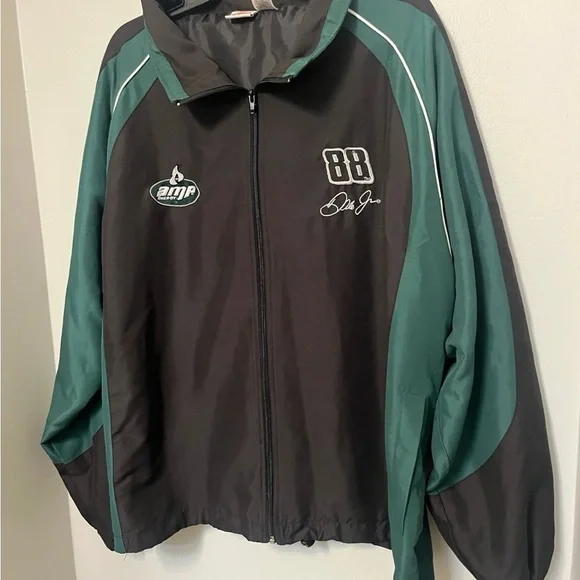 Vintage Size XL Dale Earnhardt Jr NASCAR Jacket Winners Circle 88 Amp Energy EUCPackable hoodStylish Nascar jacket. Features black and green design. Embroidered logos on front. Full zip closure.