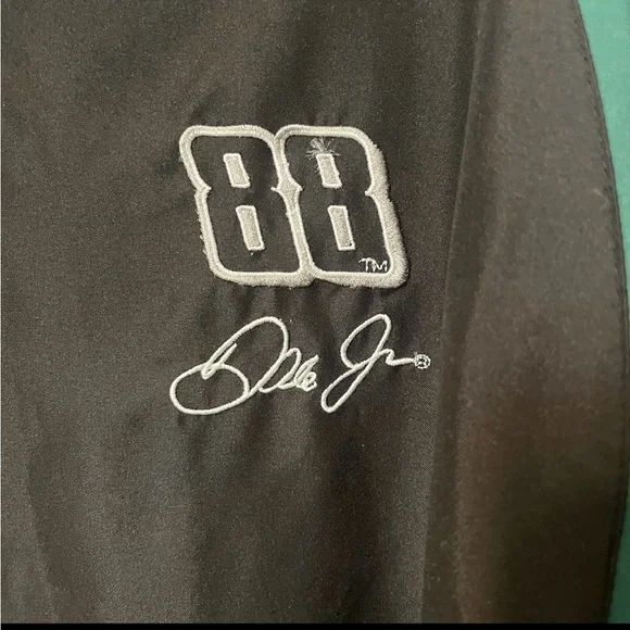 Vintage Size XL Dale Earnhardt Jr NASCAR Jacket Winners Circle 88 Amp Energy EUCPackable hoodStylish Nascar jacket. Features black and green design. Embroidered logos on front....