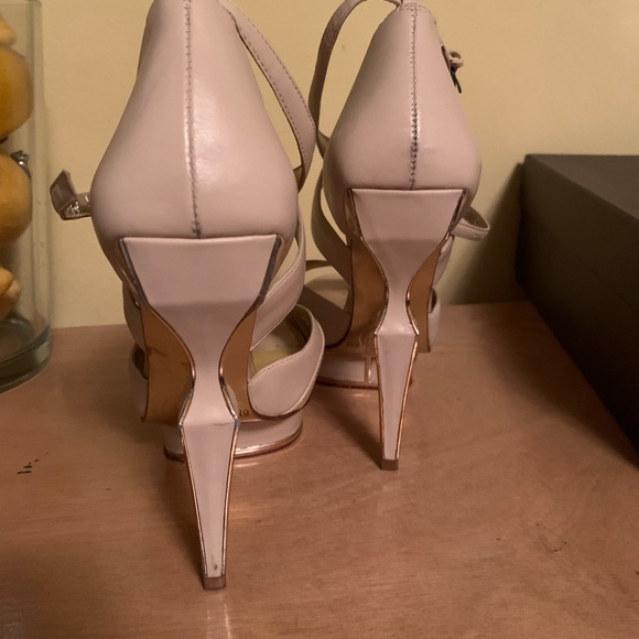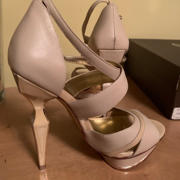Hardly worn. Tea stain color. Absolutely beautiful! Heel 5.5 inch with 1 inch platform.