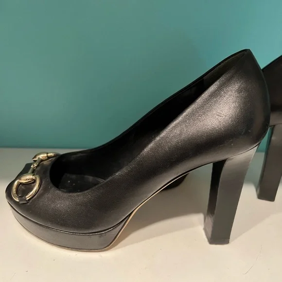 Authentic peep toe pumps. Size 6.5. Has a platform and thick heel which makes it very comfy!Pre-owned, in a good condition. See photos for any scratches/wear signs. Comes from a pet and smoke free house!