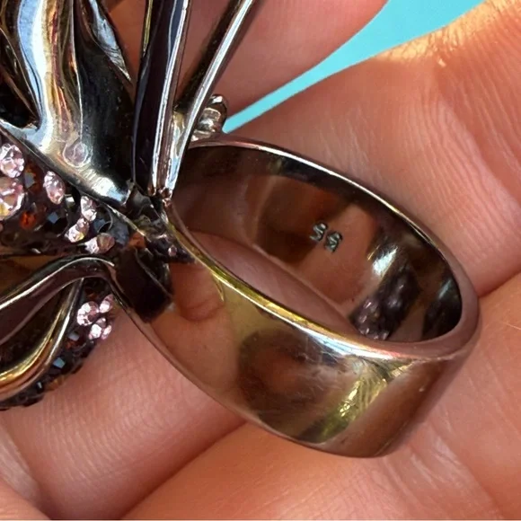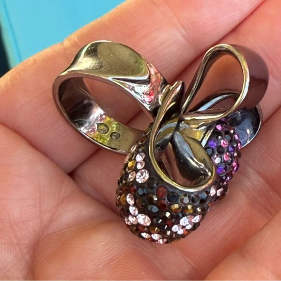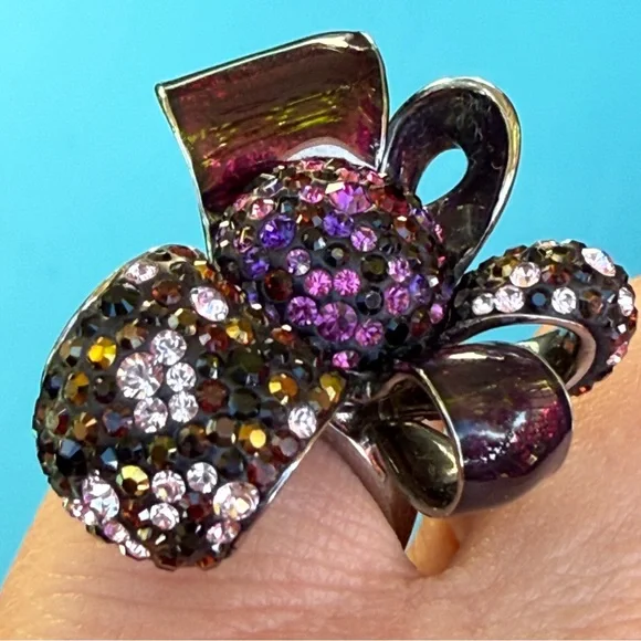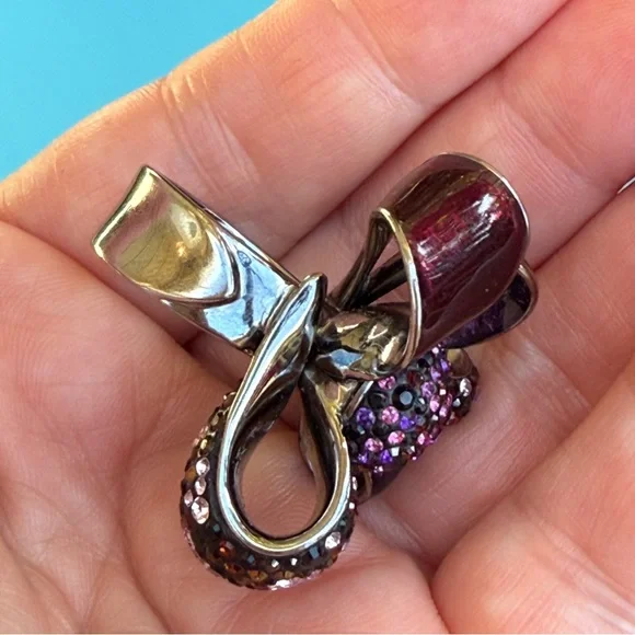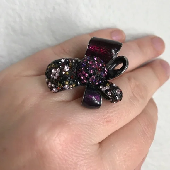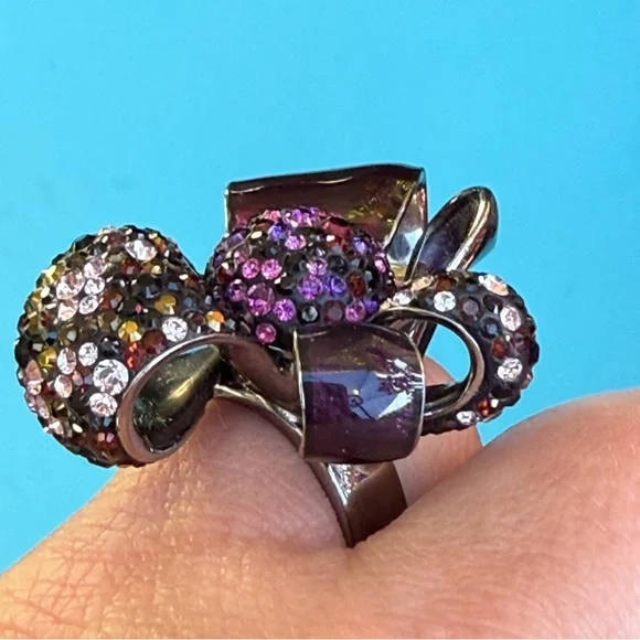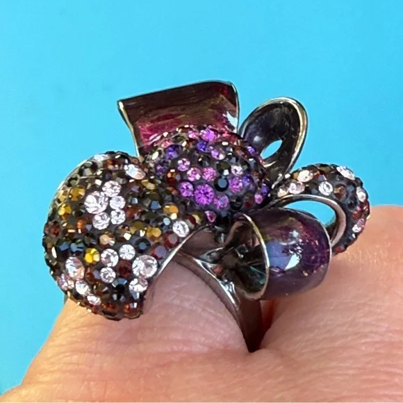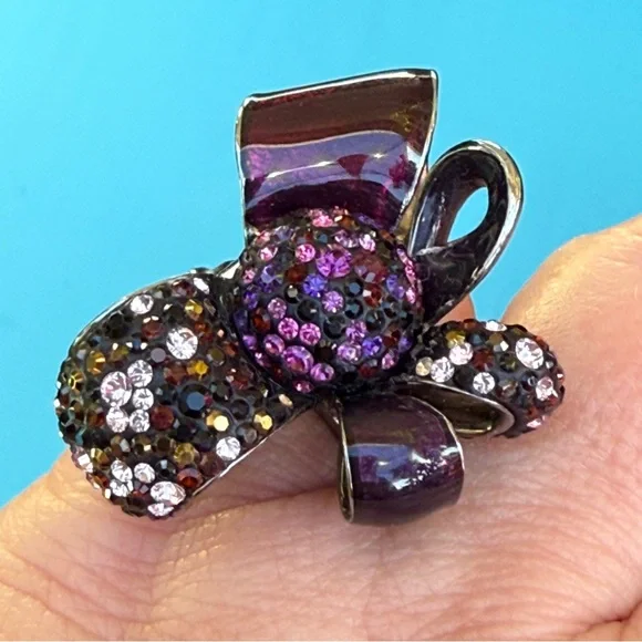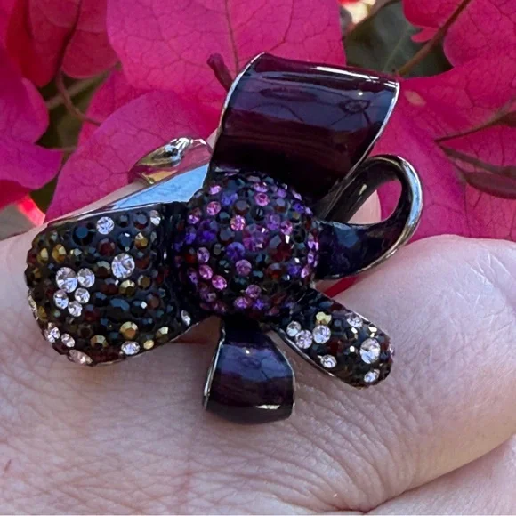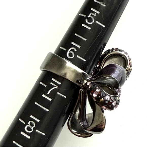 Swarovski Nirvana Purple and Black Crystal Ribbon Bow Ring Size 6.5