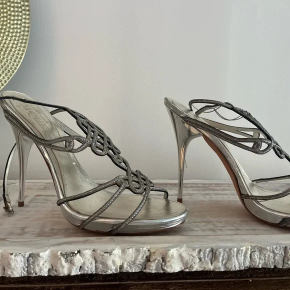 Brand new never worn, McQueen silver leather sandals