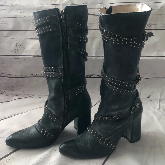 Only worn once: Freebird Jax Studded Boots. Women´s size 8. Excellent condition, distressed waxed leather look.
