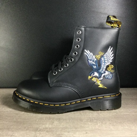 Dr. Martens 1460 Souvenir Embroidered Black Leather Boots Women´s 7 Men´s 6