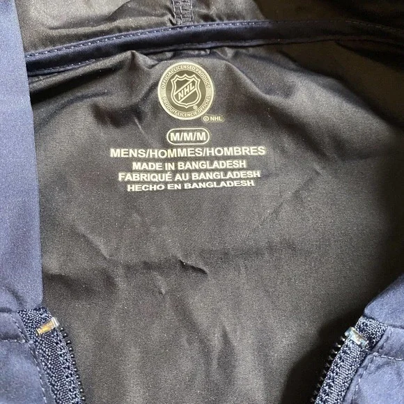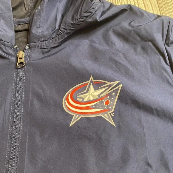 Show your team spirit with this officially licensed NHL Columbus Blue Jackets 1/4 Zip Pullover Windbreaker. This jacket is perfect for any hockey fan who wants to showcase their support for the team. Made of high-quality material, this jacket is designed to keep you warm and comfortable during the game.Featuring the team´s logo and colors, this jacket is a great addition to any fan´s collection. It comes in size M and has pockets for your convenience. Get ready to cheer on the Columbus Blue Jackets in style with this brand new jacket!100% polyesterChest (pit to pit) 22”Length (front and back) 28”New with tags.Thank you!